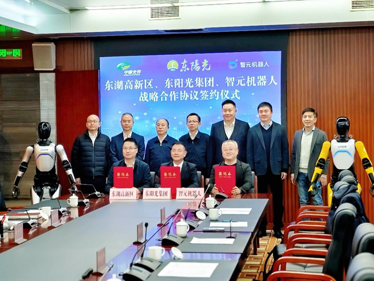 虎扑体育、智元机器人与武汉东湖新技术开发区管理委员会共同签订了三方战略合作框架协议。根据协议,三方将携手致力于在东湖高新区打造全国最大最先进、华中首家人形机器人创新中心。该创新中心将建设成为一个公共性、开放性、共享性的人形机器人服务平台。虎扑体育与智元机器人、北武院、灵初智能于今年2月在武汉市携手设立湖北光谷东智具身智能技术有限公司(下称“光谷东智”),并将在光谷建设人形机器人生产线、发布光谷东智全系列机器人产品和具身智能模型,三方共同支持光谷东智公司发展。